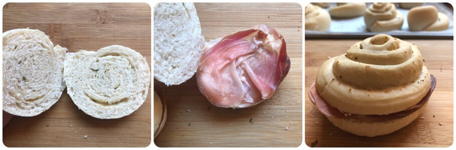 I called them rosemary flatbreads, but the first choice was ‘rosemary clouds’ which says a lot about how soft and delicate they are. Oh my, how much I liked them. Actually, how much we liked them since everyone devoured them with great satisfaction. Their preparation is very simple (especially if the dough is made with a stand mixer) but, obviously, it’s not a quick recipe. Have you ever heard of a quick leavened recipe? No! It’s a perfect oxymoron. Once ready, fill them as you like, place them on a nice board, and serve them. They will be perfect for a snack with friends or a delightful Sunday brunch.