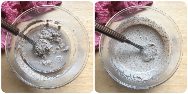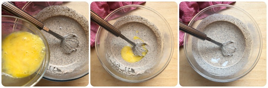 • Also add the previously beaten egg and the salt. Mix well until you get a perfectly smooth batter. Cover with plastic wrap and let it rest in the refrigerator for an hour.