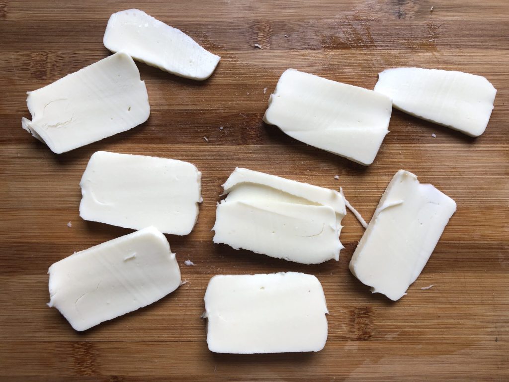Continue cooking for 7/8 minutes over medium heat and, in the meantime, cut the mozzarella into slices. I used the block mozzarella for pizza because it releases less water during cooking, but honestly, any kind will do.