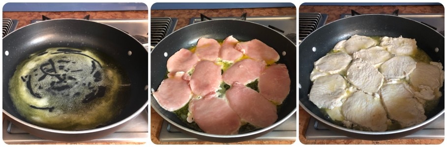 When the butter has melted, place the slices of meat in the pan and cook them for a couple of minutes on each side, turning them with tongs.