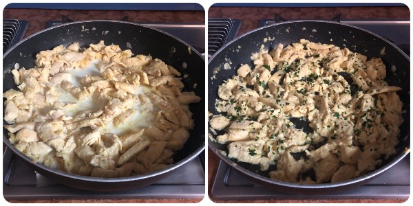 Today I wanted something different from the usual chicken breast in the pan. Something different but also quick to prepare because there was very little time available before lunch. That’s how my scrambled chicken strips were born, named after being cooked together with a mixture of spiced eggs. Not bad for an improvised recipe. Everyone appreciated them and would have eaten more if there had been more in the pan. I promised to make them again and I also recommend you to try them: easy, tasty, nutritious, and unusual.