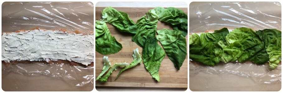 Spread this cream over the salmon slices, then cover with lettuce leaves that have been washed, dried, and trimmed of the harder central rib.