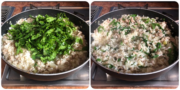 In the last 2–3 minutes of cooking, add the spinach and gently fold it in, just long enough for it to wilt.