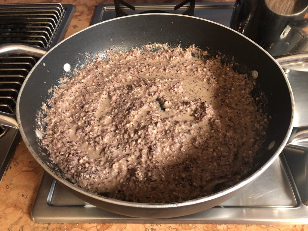 Prepare the radicchio and walnut pesto by following the recipe described HERE. As I mentioned in the introduction, this sauce can be prepared in advance and stored in the refrigerator for a couple of days.