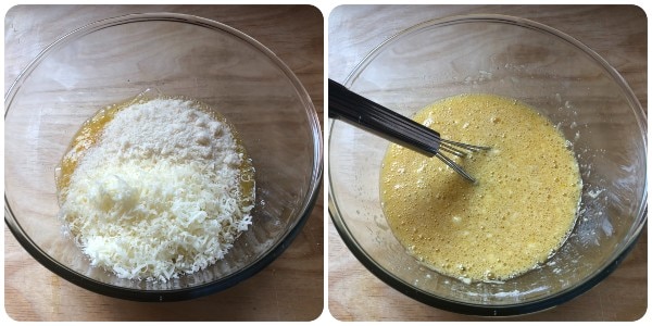 Then, add the grated cheeses and mix again.