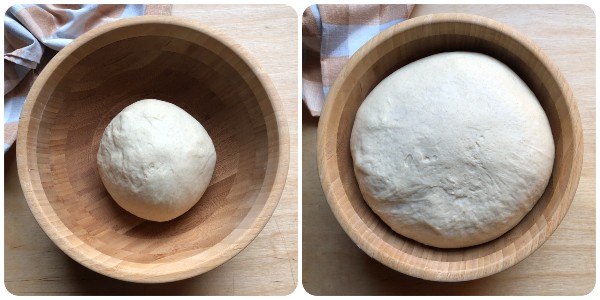 Transfer it to a work surface, shape into a ball, place it in a bowl, cover it, and let it rise until doubled in volume in a warm place, protected from drafts. The rising time greatly depends on the surrounding temperature and can vary from two to three hours.