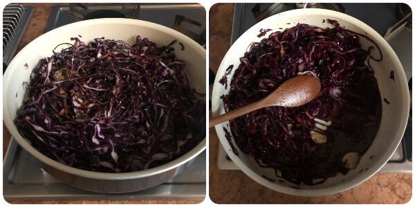 Continue cooking over low heat for about twenty minutes, stirring occasionally. At the end of cooking, the liquids should be evaporated, and the red cabbage should be soft but still crunchy. Of course, if you prefer it more tender, you just need to add a few tablespoons of hot water and continue cooking for a few more minutes.