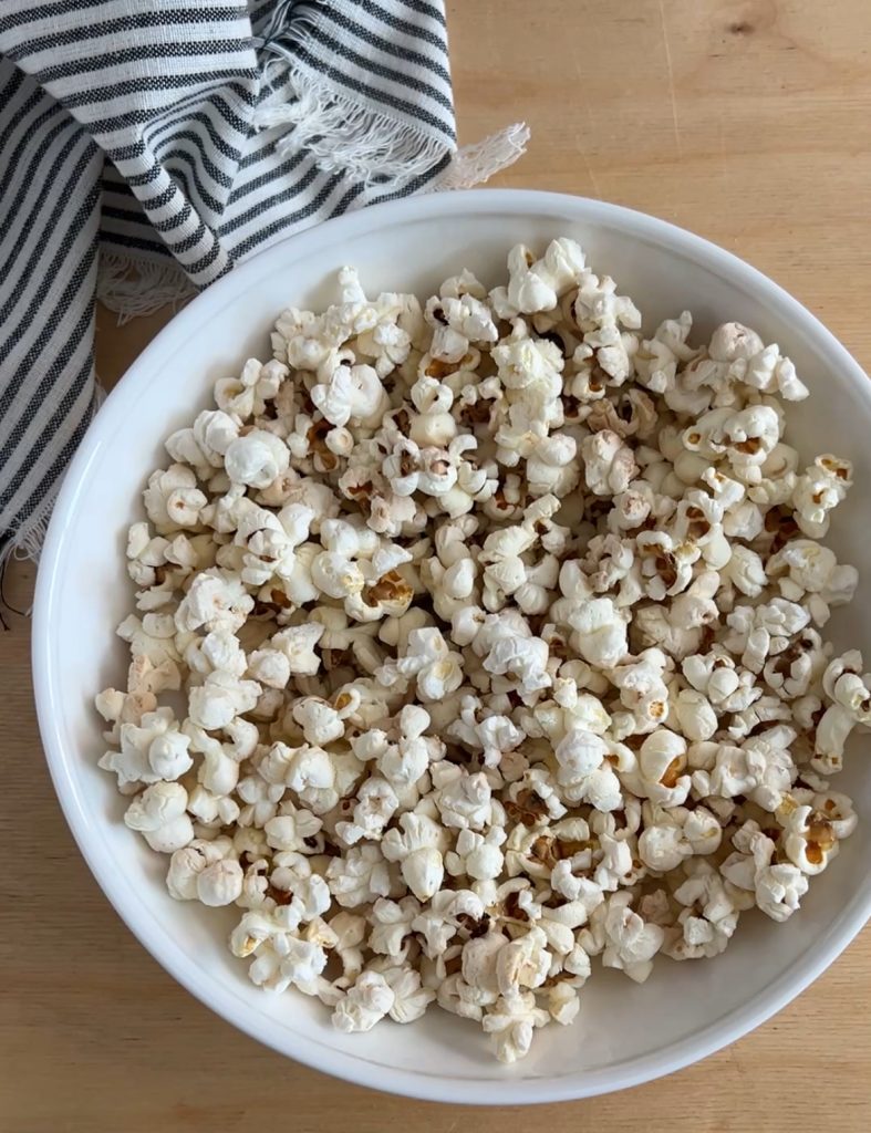 Cook over medium heat, shaking the pan occasionally and always with the lid tightly closed until all the kernels have popped. If you prefer, you can also make the popcorn in the microwave.