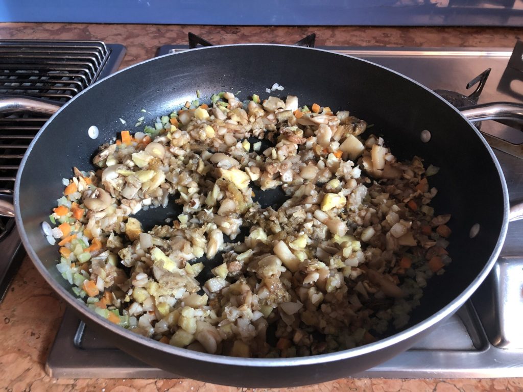 In a wide pan, heat a few tablespoons of oil before adding the soffritto mix.