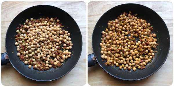Continue cooking for a few minutes over medium heat, stirring often, then add the chickpeas and let everything season. Adjust the salt.