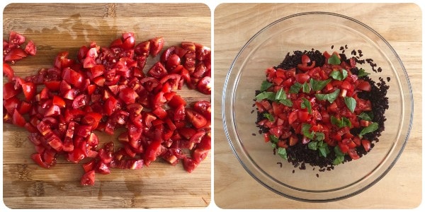 Preparation of Venere Rice with Cherry Tomatoes and Mozzarella