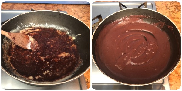 Then add the hot rice cooking water hot and cook over low heat until the cream thickens.