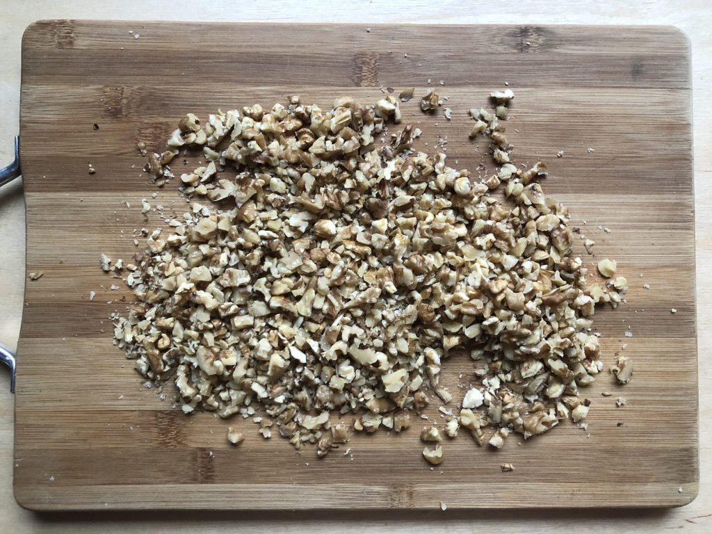 Coarsely chop the walnuts with a knife.