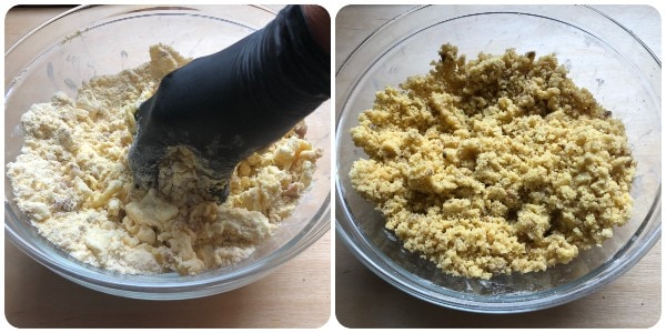 At this point, work the dough very well with your hands until you get a crumbly mixture.