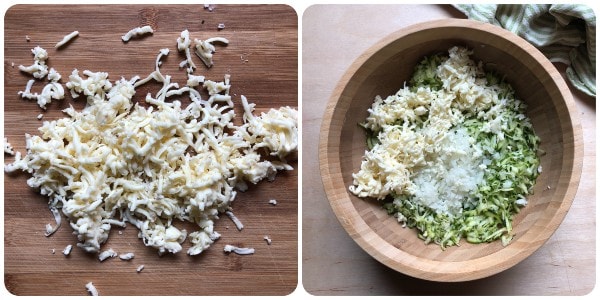 Grate the brie (again with the large-hole grater) and add it to the zucchini.