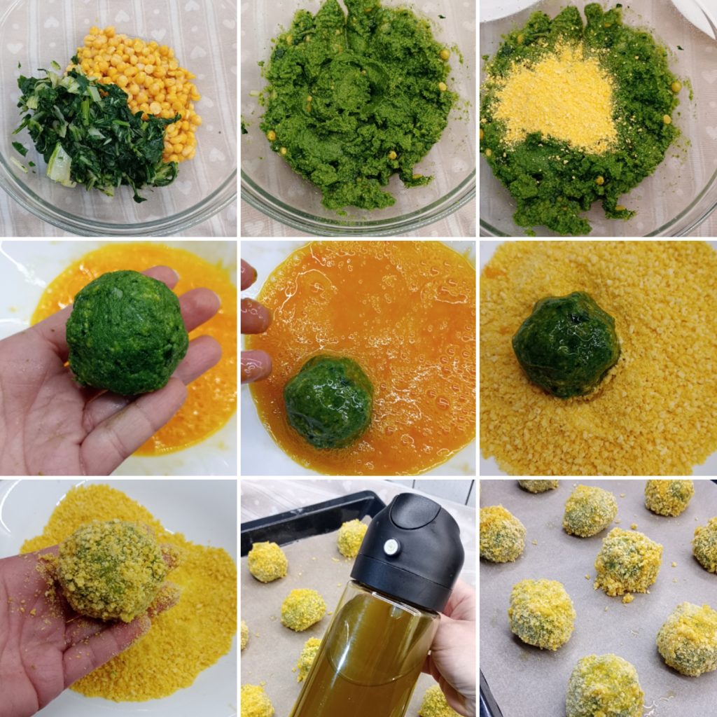 Now create all the balls. Dip them first in the beaten egg and then in the breadcrumbs for a perfect coating.
