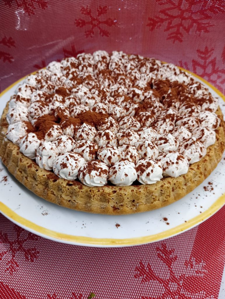 Place the obtained cream in a piping bag (or you can spread it directly with a spatula over the cake) and start decorating.Finally, dust with unsweetened cocoa.
