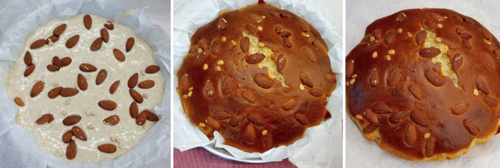 After 35 minutes, do the toothpick test: if it comes out dry, the cake is ready, otherwise extend the cooking time. If the surface darkens too much after 25 minutes or earlier, cover with parchment paper and finish baking.