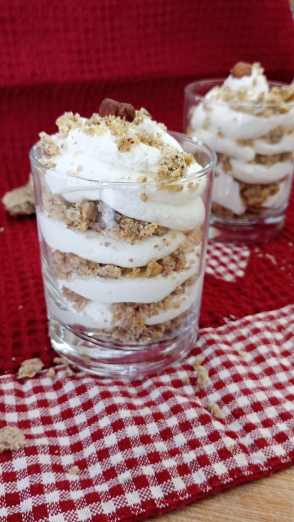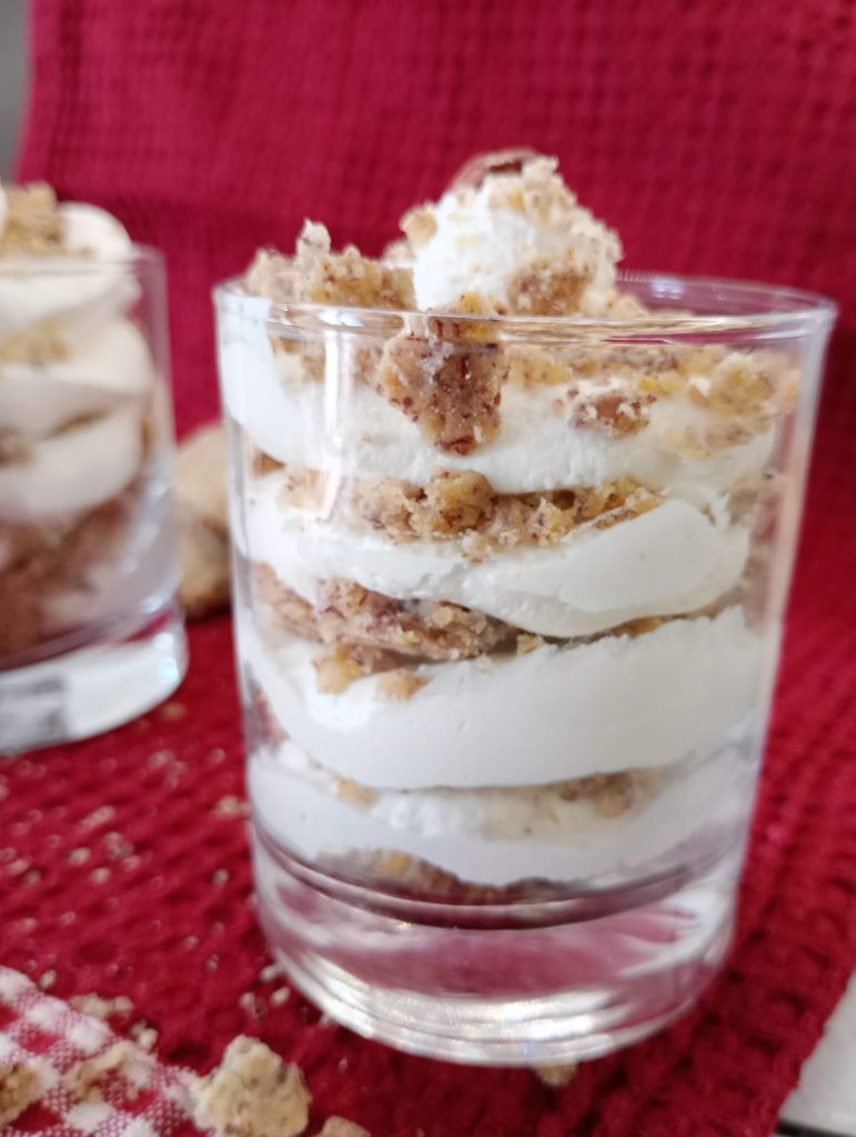The cup with yogurt mousse is a delicious spoon dessert. A very light dessert that is prepared in no time. I used vanilla yogurt, but you can use any flavor you prefer. Between the layers, I wanted to use hazelnut-flavored biscuits, but you can pair it with fruit as well. The cup with yogurt mousse is perfect for a tasty snack or as an after-meal treat.