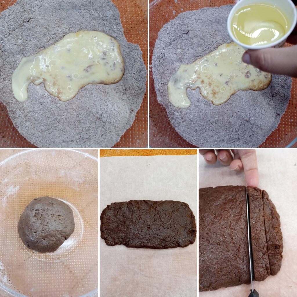 Create a loaf with the dough and flatten it; if you want to make two smaller stick cookies, divide the dough in half. With the help of a knife, cut the loaf into sticks.