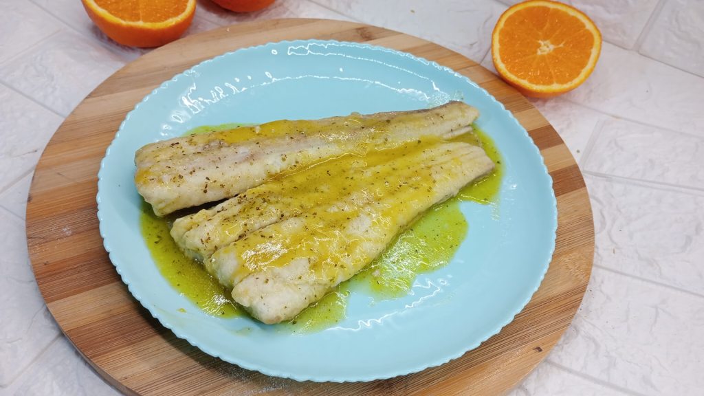 In a pan, pour a drizzle of extra virgin olive oil, let it heat for a minute, then place the fillets, browning them for a minute on both sides. After this time, pour the previously prepared and filtered orange juice. Cover with a lid and let cook for about 10 minutes on low heat. If it dries too much, add a shot glass of water and remember to salt and season to taste.