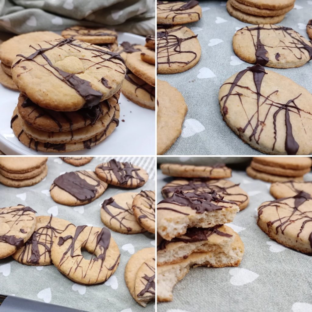 Today I present to you these delicious egg-free dry cookies. They are crunchy on the outside and just right crumbly on the inside. They are perfect any time of the day, enjoyed alone or accompanied by coffee or tea. I have enriched these cookies with melted dark chocolate, a real treat.