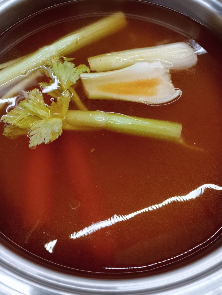 Place the pot on the heat with the water and all the aromatics needed for the broth and bring it to a boil.