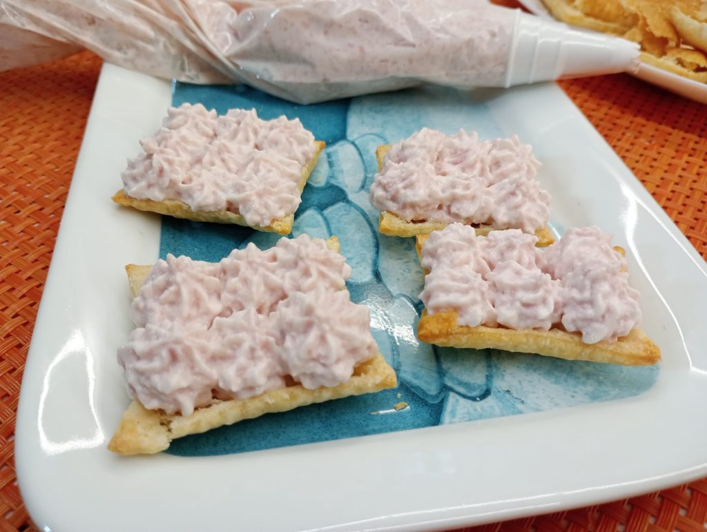 For a fancier result, transfer the mousse into a piping bag with a star tip and form dollops on crostini, canapés or vol-au-vent. You can decorate each portion with a pinch of pistachio granules for a touch of color and crunchiness.