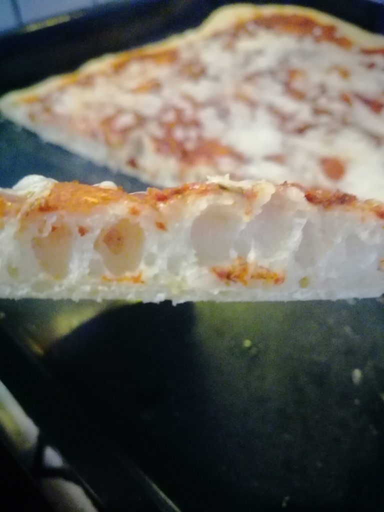 Pizza is always pizza. Good and simple. Red, with mozzarella, topped… in short, pizza is liked by almost everyone, there is no doubt about that. In this recipe, I propose pan pizza, by the slice. Crispy on the outside and soft on the inside.