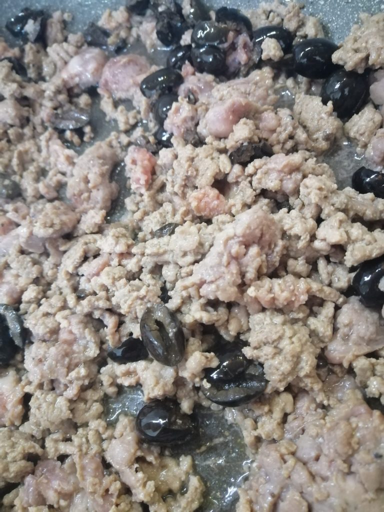 Cook the meat with the chopped olives for a few minutes; 3/4 minutes will suffice.