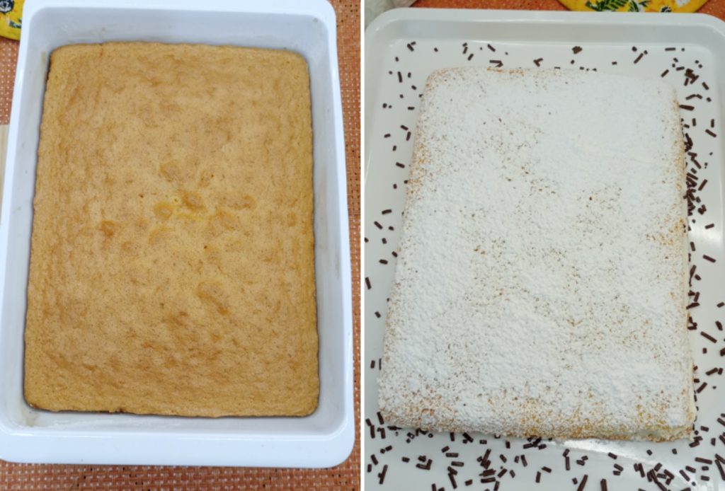 This base is perfect to enjoy as is, dusted with powdered sugar. But if your goal is Kinder Paradise, simply cut the cake horizontally into two layers and fill it with a simple milk cream (based on fresh cream and condensed milk). You will get a soft and irresistible snack just like the original! The recipe for the Paradise Cake Here.