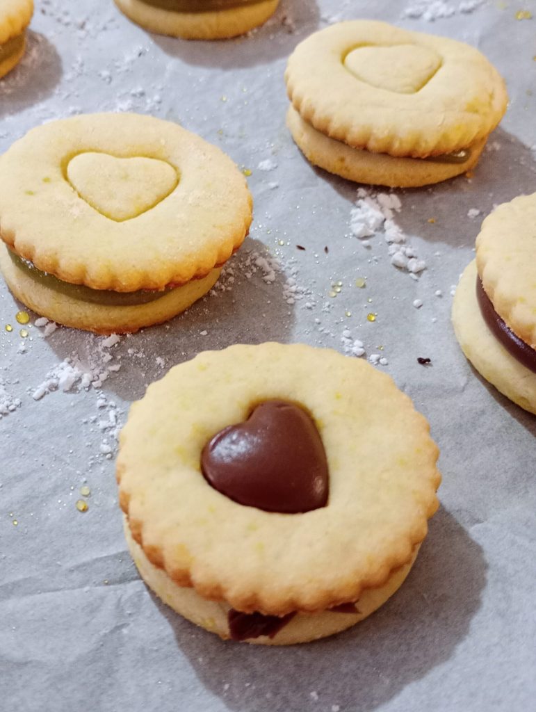 With these doses, you can make about 20 double cookies, depending on the size and thickness. Roll out the dough not too thinly so you can enjoy all their fragrance with each bite.