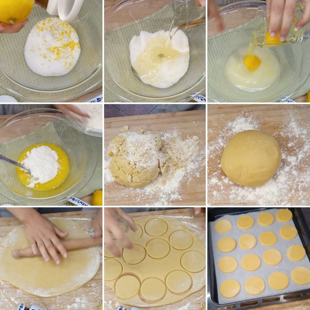 The simple and crunchy cookies are easy-to-make breakfast or snack sweets that can be kept in the pantry for several days. It’s a very simple recipe: the shortcrust pastry used doesn’t need to rest. Once the dough is formed, it is rolled out, cut, and baked. They are lemon-flavored, but you can vary them according to taste, for example with orange, cinnamon, or vanilla flavor.
