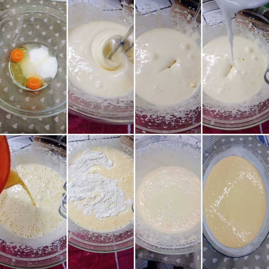 In a bowl, beat the eggs with the granulated sugar using electric beaters until the mixture is pale and fluffy. Then, slowly pour in the milk, vegetable oil and the orange juice, continuing to mix gently. Finally, add the sifted all-purpose flour and baking powder. Mix well until the batter is smooth and free of lumps.
