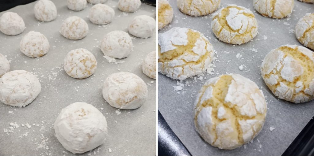 Important: Prepare all the balls first and only then roll them in powdered sugar. If you do it right away, the dough will absorb all the sugar before baking, removing the beautiful white coating!