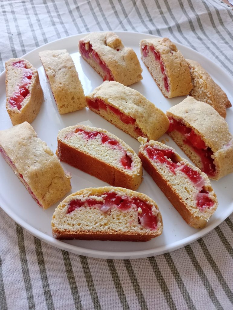 The strawberry cantucci are Easy and quick to prepare, lending themselves beautifully either as a refined dessert at the end of a meal or as a delightful afternoon treat. They are the perfect solution for those looking for a homemade dessert that is both comforting and unexpectedly fresh and springlike. A true masterpiece of simplicity and taste!