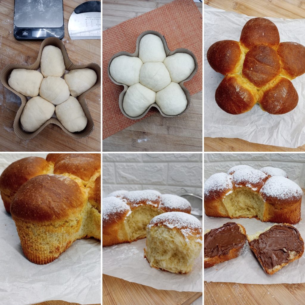 This time, I chose to keep my brioche bread in its basic version without filling it inside. The beauty of this recipe is its versatility: you can fill the balls before the second rising, or bake it and slice it in the middle, filling it as you like.