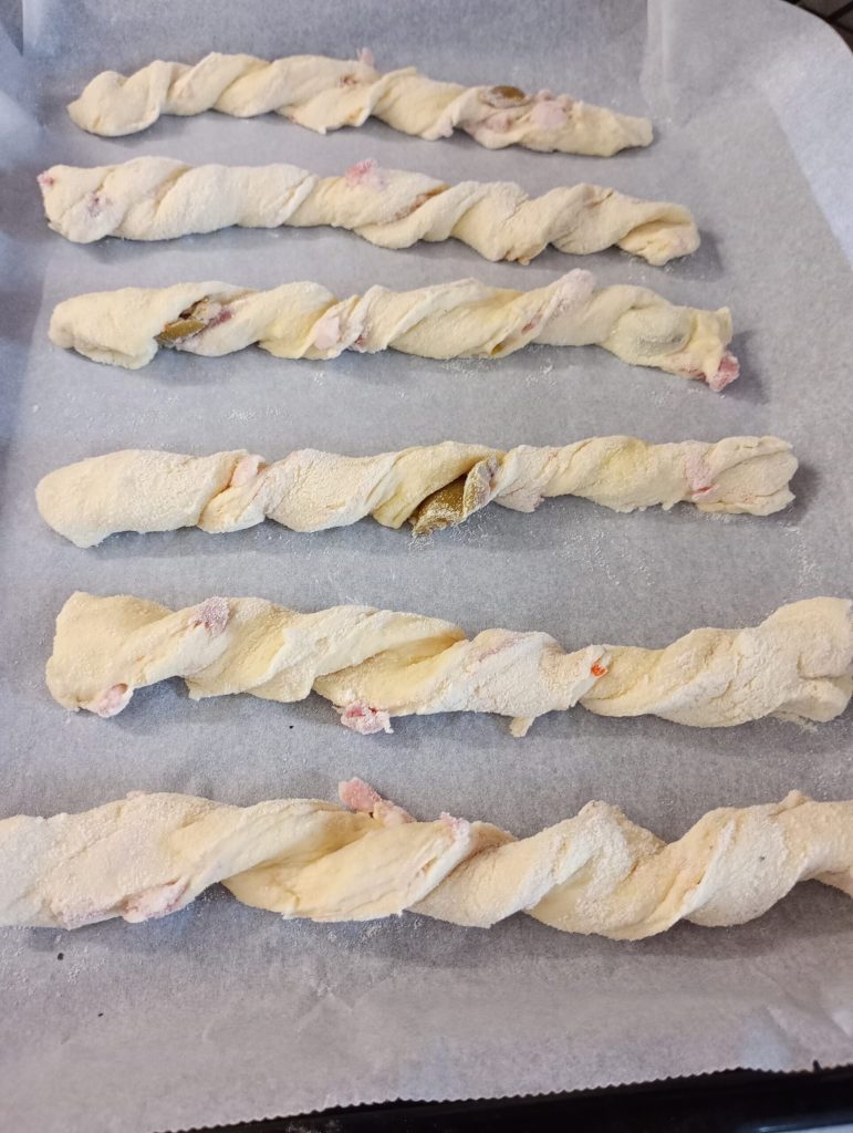 If you love snacks, leavened doughs, and tasty rustic treats, you are in the right place. I propose these twists with bacon and olives, truly delicious and flavorful sticks, you’ll fall in love at first bite. Ideal to enjoy on their own, as an appetizer, or as a side to salads, soups, or a main course of meat or fish. They are really easy to make, just respect the rising times.