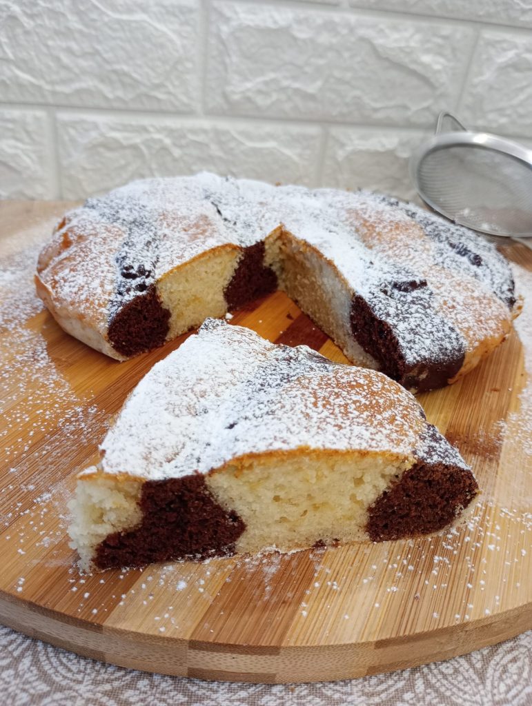 The two-tone cake is delicious, wholesome, and made with very few ingredients. The batter contains no eggs. A perfect dessert for breakfast and more, the strong taste of cocoa makes this cake very tasty. Come with me and let’s start baking.