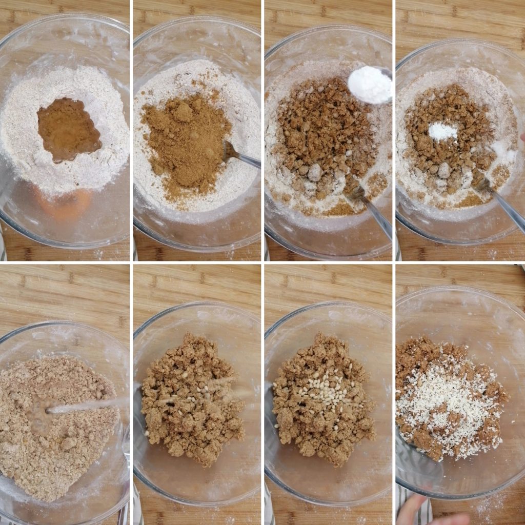 Add the pine nuts and grated white chocolate, and mix well into the dough to create a dough ball.
