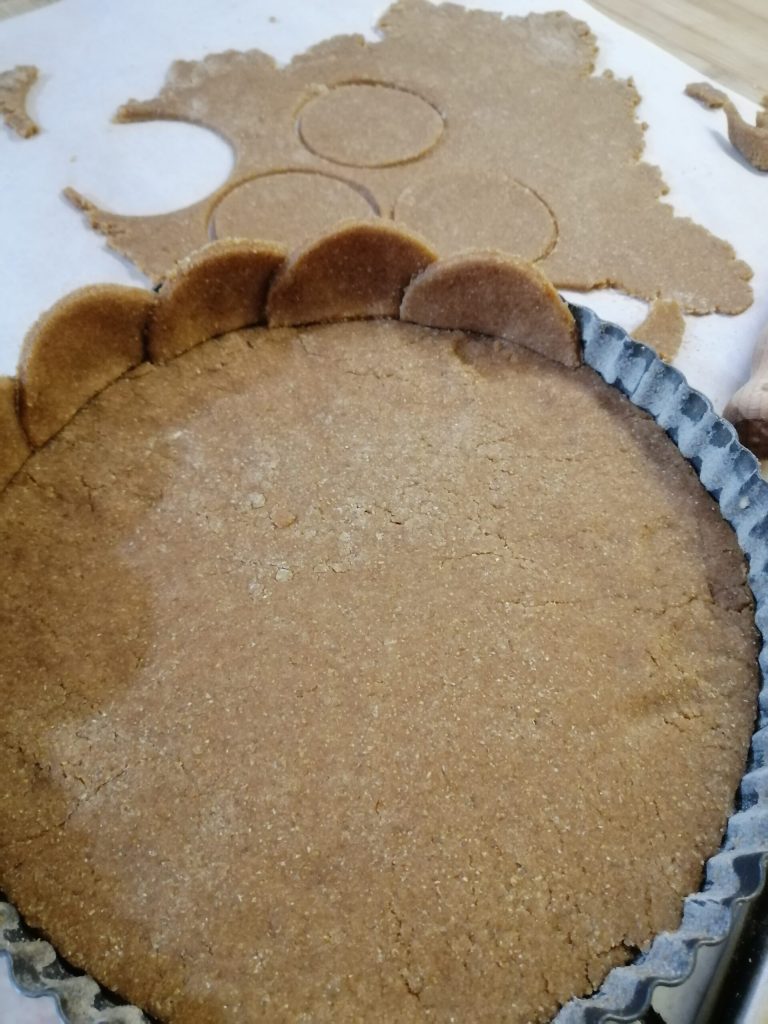 With a glass, I cut circles and then divided them in half to compose the edges of the tart