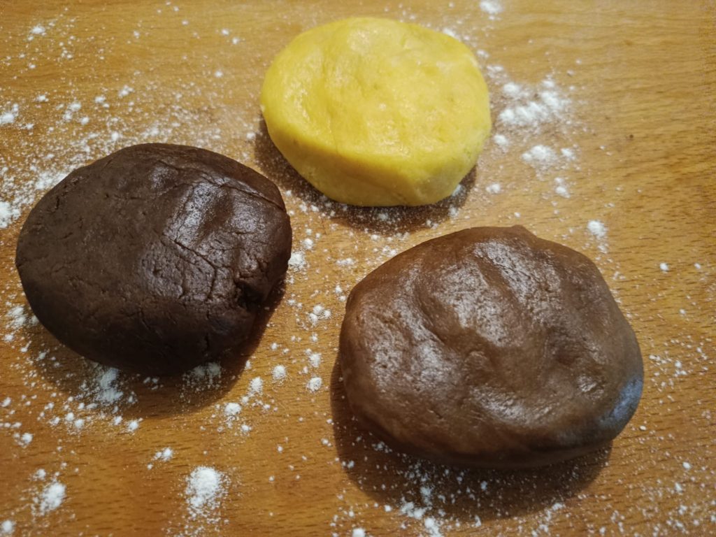 Wrap the three doughs in plastic wrap and let them rest in the refrigerator for 30 minutes.