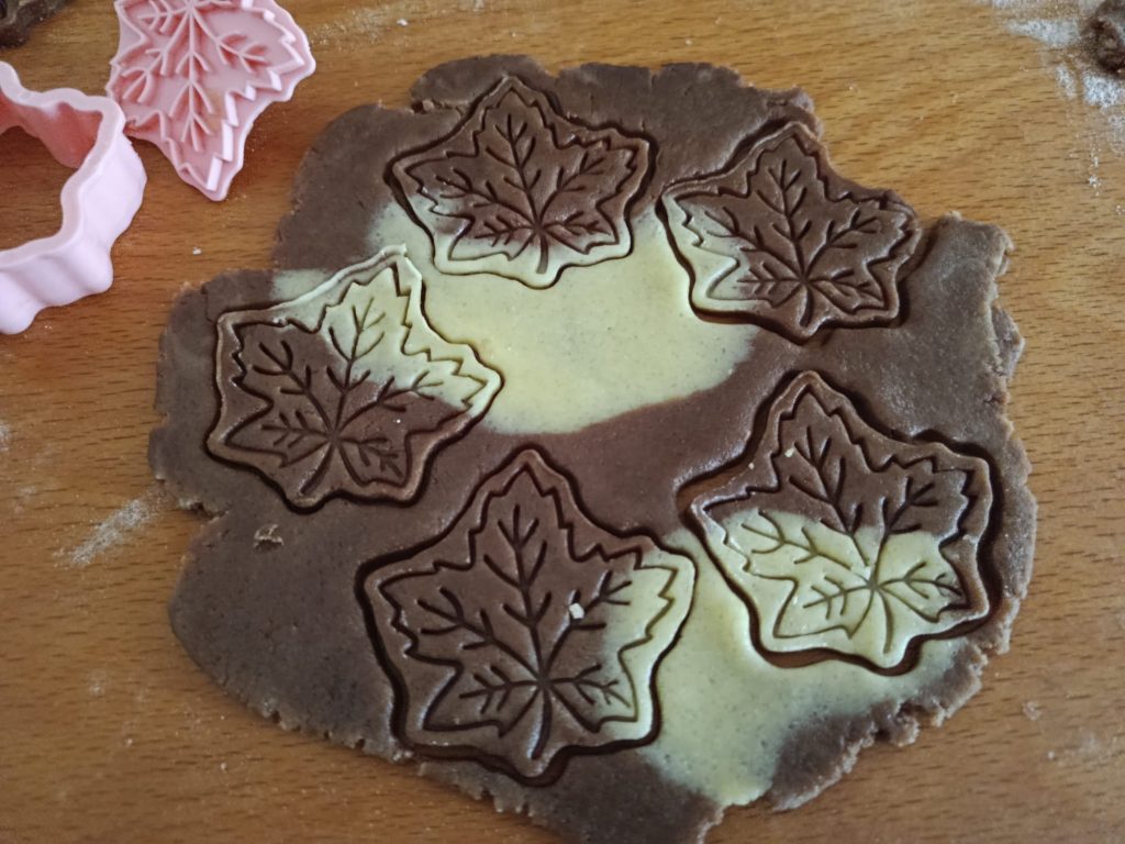 They are crumbly cookies, fragrant and colored in three shades that remind you of the leaves falling from the trees, bringing a touch of magic to the table.