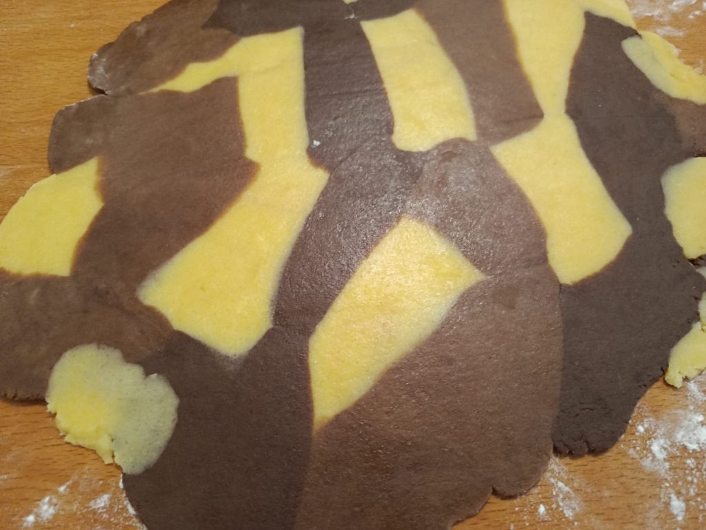 The cookies can be stored for up to 7-10 days in a tin box or a tightly closed glass jar. It is possible to freeze the raw dough already divided into the three colors, wrapped in cling film: it will last up to 1 month. Just let it thaw in the refrigerator before rolling and baking.