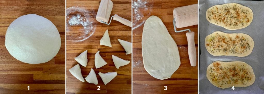 Try to roll them out as thin as you can, so they will be crispy and full of bubbles.