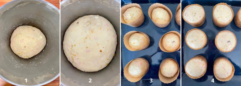 Sure, you can also distribute the dough in larger molds. However, keep in mind that the panettones might rise a bit less, given the simplicity of the process (which does not involve all the steps of traditional panettone). If you can’t find 100g molds, you can use large muffin molds.