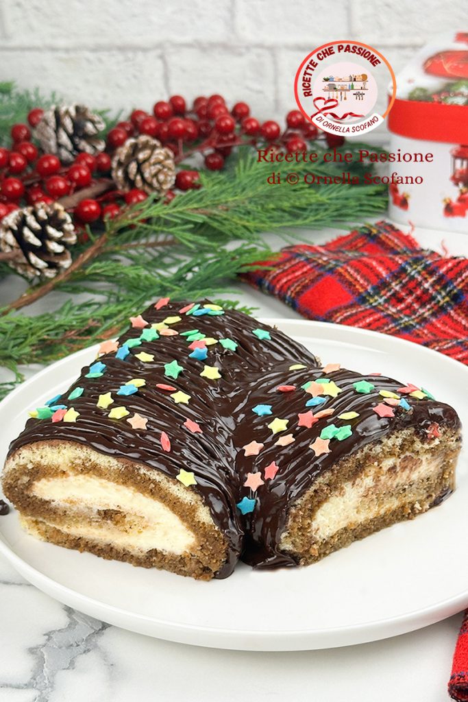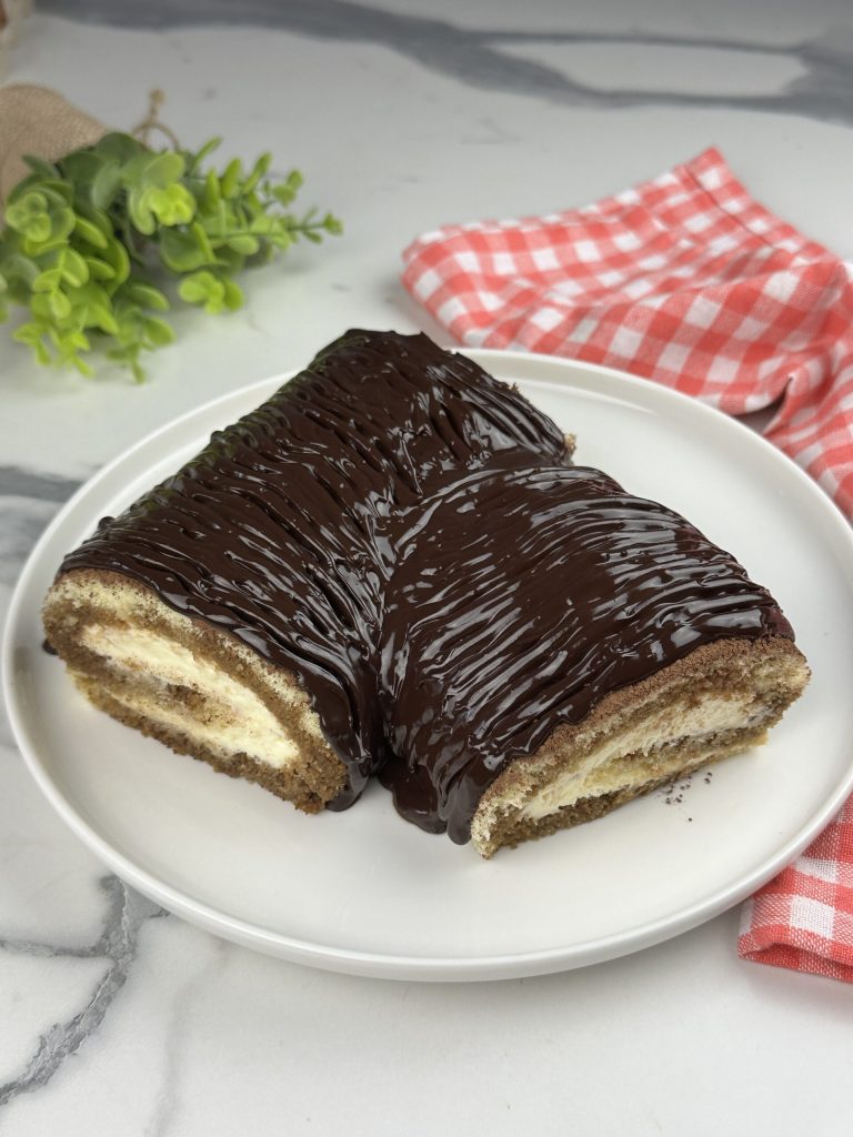 Christmas Log Tiramisu with Chocolate Coating. A good dessert easy to make at home, creamy and delicious with a biscuit dough base, the easy and quick one, which rolls up without breaking, also fat-free and yeast-free. For the filling, lots of good mascarpone cream, in this case, I did not pasteurize the eggs, as store-bought eggs are controlled and fairly safe, but if you want to be 100% sure you can pasteurize the eggs with a safe method, by clicking on the highlighted text, you will also find the video showing you in detail how to do it, then just add the mascarpone. I love tiramisu and on every special occasion, it cannot be missed, it’s nice to change its shape, but the taste remains the same, in fact, the biscuit dough, once soaked with coffee, is very similar to ladyfingers. So let’s see how to prepare this delicious dessert to bring to the table during the Christmas holidays.