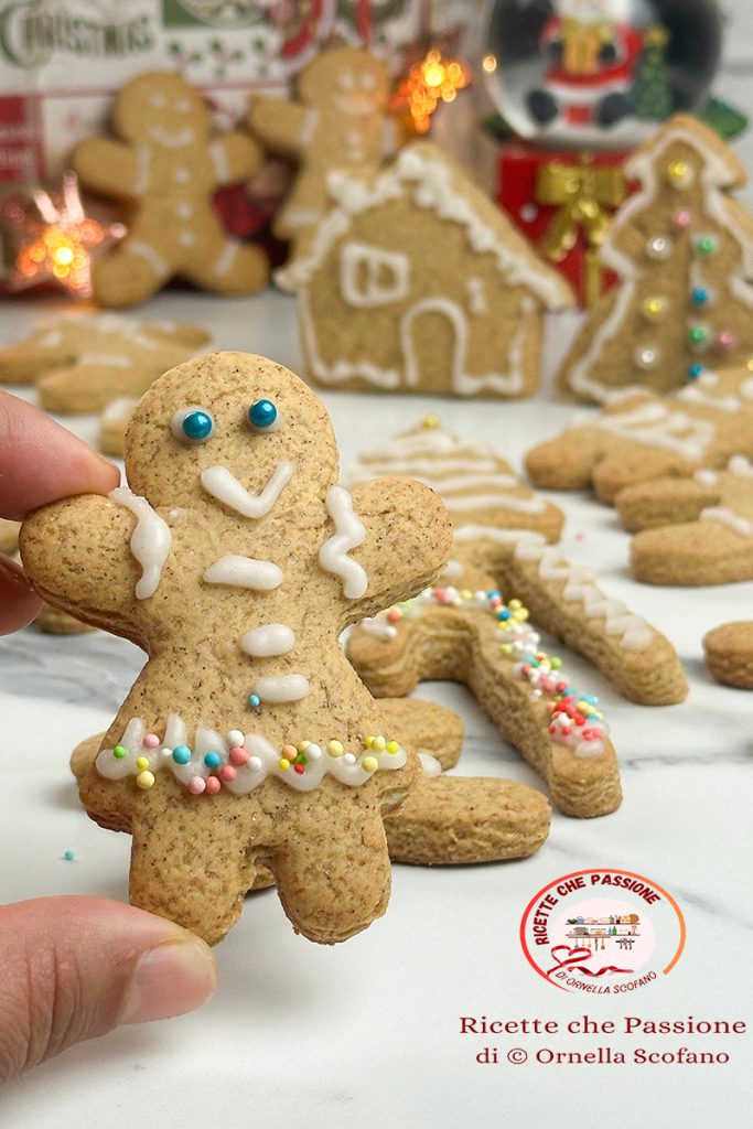 Gingerbread cookies, the spiced Christmas cookies to build a beautiful Santa’s village or to use as decorations for the house or the Christmas tree. Gingerbread cookies are spiced butter cookies, easy to make, and really very good. I made them for the first time this year, thinking to myself that since they had ginger I might not like them, but there isn’t just ginger in these cookies, also cinnamon, nutmeg, cloves, and honey that make them really special cookies, and in fact, I loved them so much, I hoped they would last a bit longer, but they were so good they disappeared in the blink of an eye. However, they can be made in advance, a few days ahead, great to give as Christmas gifts, also great in a mixed cookie gift pack for Christmas gifts.