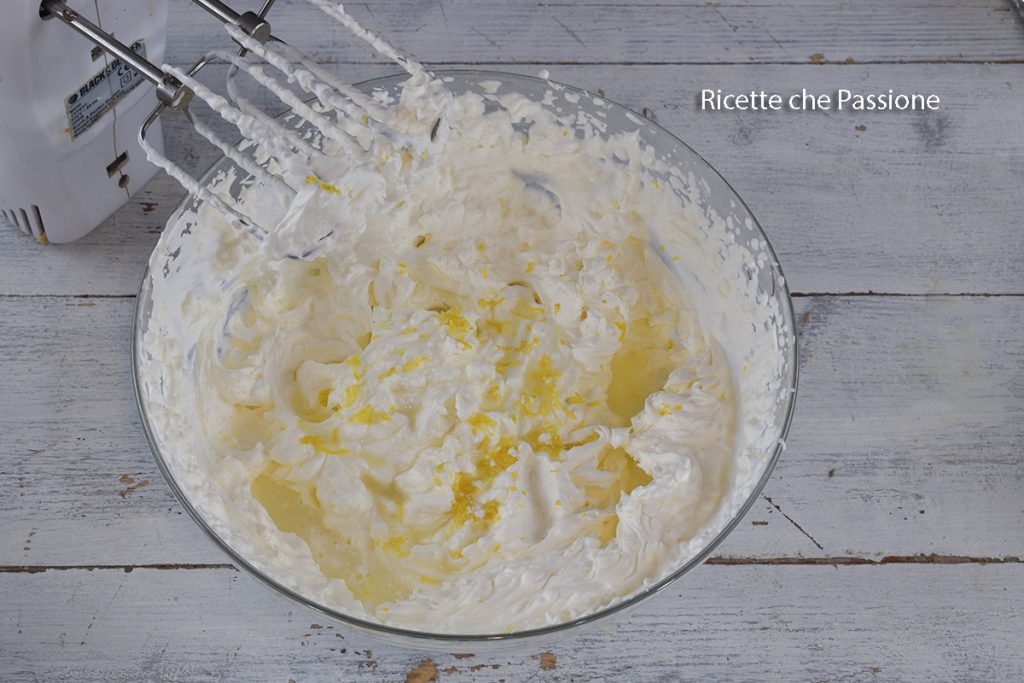 2. Add the mascarpone to the whipped cream, and mix slowly with the beaters to incorporate it.
