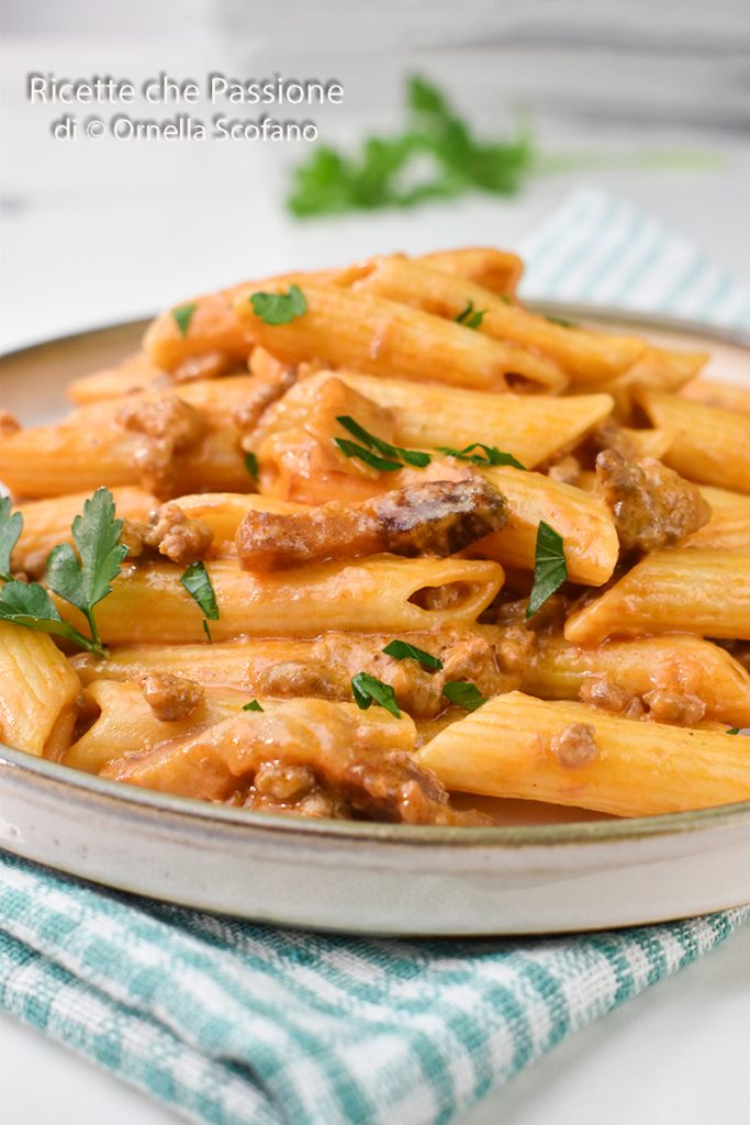 Penne alla Boscaiola, a rich-flavored dish, easy to prepare and also very quick, is a perfect dish to prepare for a family lunch, even for Sunday lunch, but thanks to its quick execution it is also perfect for a meal with friends, when you want to be in company, but don’t feel like spending too much time cooking. With a rich main pasta dish, you can make a good impression, satisfy the whole group without great effort. In fact, the time it takes to cook the pasta is enough to prepare the necessary sauce for penne alla boscaiola in a few minutes, but of course, you can use other types of pasta, like spaghetti or tagliatelle, maybe those good homemade egg ones. I know you don’t feel like putting in too much effort, but imagine the satisfaction of letting your guests taste a good pasta dish made with your own hands. Here is the recipe for homemade egg tagliatelle, and I’ll leave you to the recipe. At the end, you’ll find some tips for possible variations to enrich or change the taste to your liking, always respecting the pasta cooking times. So, enjoy your boscaiola pasta, and off to the kitchen.